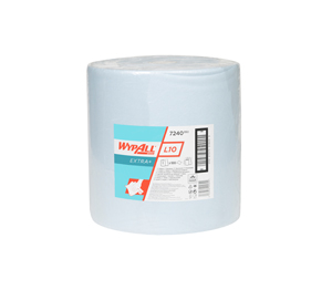 The WYPALL* L10 Extra+ range has been designed to provide customers with great reliability for multipurpose wiping and cleaning tasks. This principals is certified for food contact to the standard of BFR XXXVI, considered to be the benchmark for food legislation in Europe.The WYPALL* L10 Extra+ Wiper Large Roll 7240 is the ideal solution for medium duty wiping, polishing glass, cleaning surfaces & tools. The unique Airflex* base sheet technology is strong enough to see any job through from start to finish without falling apart and absorbent enough to clean up the most spills with ease. These wipers come at the value you would expect from a limited life wiper, but with exceptional strength and absorbency resulting in fewer wipers used and less money spent.Delivered in a Large Roll format to provide easy access to wipers using a dispenser in larger manufacturing or industrial work areas, or anywhere requiring extensive wiping.